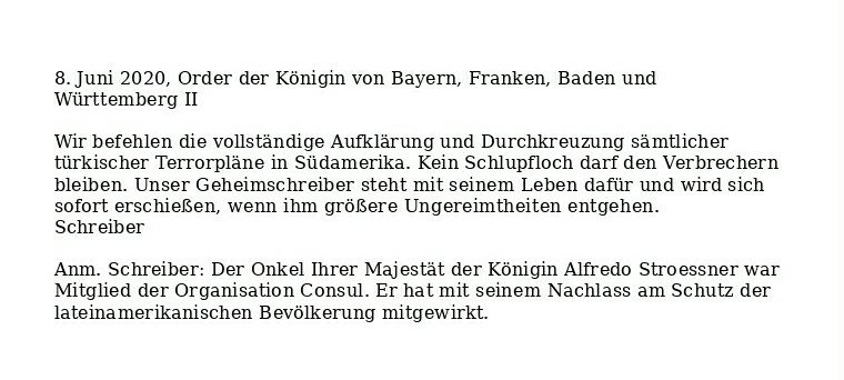 Order der Königin von Bayern Verfasst vongeheimschreiber8. Juni 2020Veröffentlicht inBefehleSchlagwörter:Arbeit, Österreich, Bayern, Bürgerkrieg, Befehl, Frieden, Königin Teilen mit: Auf X teilen (Wird in neuem Fenster geöffnet) X Auf Facebook teilen (Wird in neuem Fenster geöffnet) Facebook Gefällt mir Wird geladen … Ähnliche Beiträge Veröffentlicht von geheimschreiber Geboren 1975, Nationalist, lebt in Berlin. Mehr Beiträge anzeigen