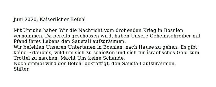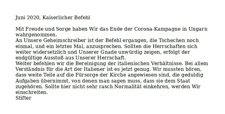 Befehle zu den Kronländern Verfasst vongeheimschreiber16. Juni 202016. Juni 2020Veröffentlicht inBefehleSchlagwörter:Corona, Freude, Italien, Orbán, Tschechien, Ungarn Teilen mit: Auf X teilen (Wird in neuem Fenster geöffnet) X Auf Facebook teilen (Wird in neuem Fenster geöffnet) Facebook Gefällt mir Wird geladen … Ähnliche Beiträge Veröffentlicht von geheimschreiber Geboren 1975, Nationalist, lebt in Berlin. Mehr Beiträge anzeigen