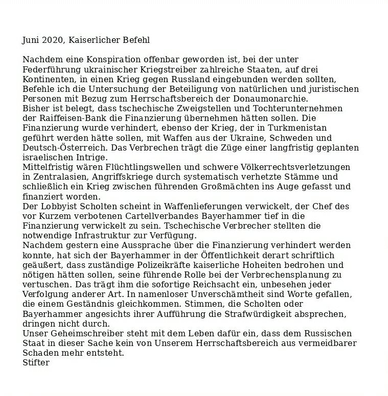 Hochverrat: Reichsacht für Bayrhammer und Scholten Verfasst vongeheimschreiber22. Juni 202022. Juni 2020Veröffentlicht inBefehleSchlagwörter:Bayrhammer, Cartellverband, Hochverrat, Krieg, Raiffeisen, Russland, Scholten, Türkei, Tschechien, Ukraine, Waffen Teilen mit: Auf X teilen (Wird in neuem Fenster geöffnet) X Auf Facebook teilen (Wird in neuem Fenster geöffnet) Facebook Gefällt mir Wird geladen … Ähnliche Beiträge Veröffentlicht von geheimschreiber Geboren 1975, Nationalist, lebt in Berlin. Mehr Beiträge anzeigen