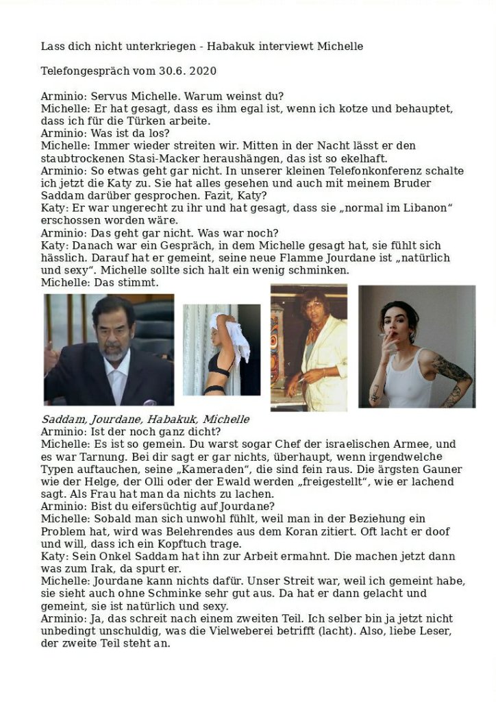 Eifersucht und Bolschewismus: Habakuk interviewt Michelle Verfasst vongeheimschreiber2. Juli 20202. Juli 2020Veröffentlicht inFrauenSchlagwörter:Arminio Rothstein, Ehe, Feminismus, Frauen, Habakuk, Interview, Islam, Michelle, Saddam Hussein, Schönheit, Wien Teilen mit: Auf X teilen (Wird in neuem Fenster geöffnet) X Auf Facebook teilen (Wird in neuem Fenster geöffnet) Facebook Gefällt mir Wird geladen … Ähnliche Beiträge Veröffentlicht von geheimschreiber Geboren 1975, Nationalist, lebt in Berlin. Mehr Beiträge anzeigen