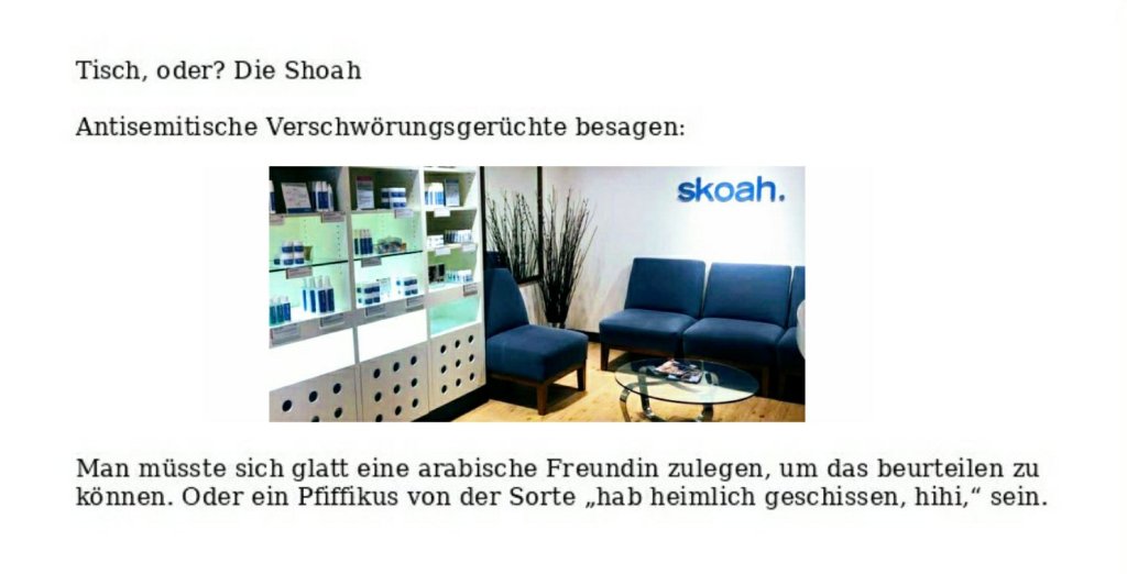 Holocaust-Leugnung? Verfasst vongeheimschreiber5. Juli 20206. Juli 2020Veröffentlicht inStifterSchlagwörter:Adalbert Stifter, Holocaust, Satire Teilen mit: Auf X teilen (Wird in neuem Fenster geöffnet) X Auf Facebook teilen (Wird in neuem Fenster geöffnet) Facebook Gefällt mir Wird geladen … Ähnliche Beiträge Veröffentlicht von geheimschreiber Geboren 1975, Nationalist, lebt in Berlin. Mehr Beiträge anzeigen