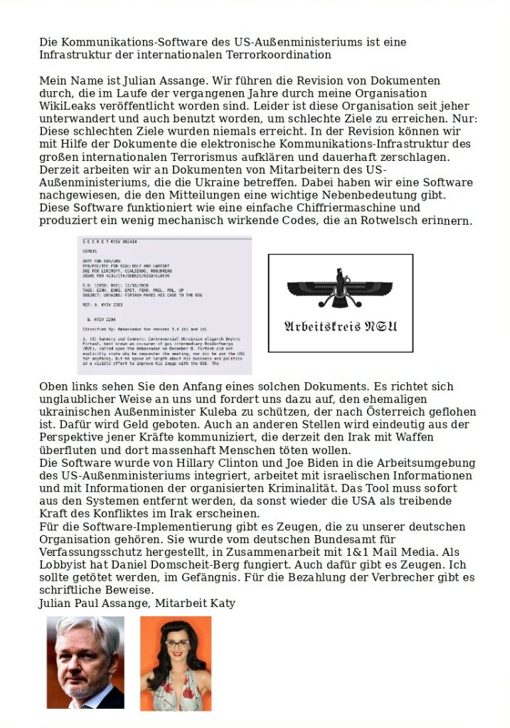 Julian Assange: Joe Bidens Terrorsoftware Verfasst vongeheimschreiber11. Juli 202014. Juli 2020Veröffentlicht inTerrorismusSchlagwörter:Cables, Hillary Clinton, Joe Biden, Julian Assange, Katy Perry, Terrorismus, Ukraine, WikiLeaks Verweis zum aktuellen Artikel von Edward Snowden und zu unserem Irak-Projekt Verweis zum Original-Dokument Teilen mit: Auf X teilen (Wird in neuem Fenster geöffnet) X Auf Facebook teilen (Wird in neuem Fenster geöffnet) Facebook Gefällt mir Wird geladen … Ähnliche Beiträge Veröffentlicht von geheimschreiber Geboren 1975, Nationalist, lebt in Berlin. Mehr Beiträge anzeigen