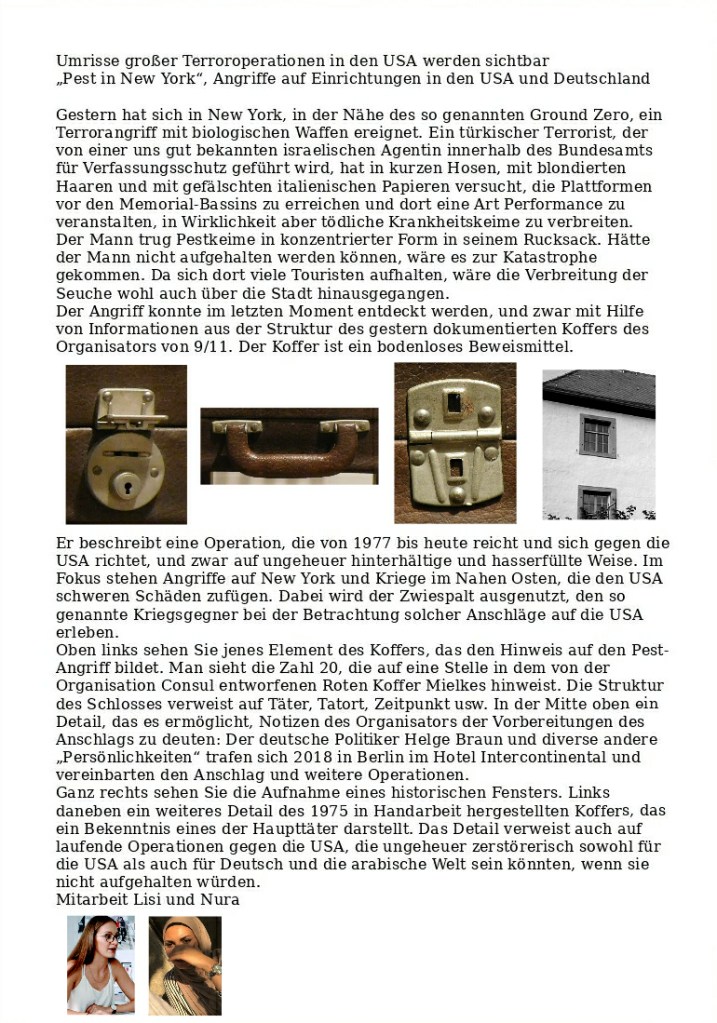 Pest-Angriff auf New York Verfasst vongeheimschreiber26. Juli 2020Veröffentlicht inTerrorismusSchlagwörter:9/11, Helge Braun, Israel, Koffer, Lungenpest, New York, Terrorismus, USA Ausgangsanalysen zum „Goldkoffer“ Teilen mit: Auf X teilen (Wird in neuem Fenster geöffnet) X Auf Facebook teilen (Wird in neuem Fenster geöffnet) Facebook Gefällt mir Wird geladen … Ähnliche Beiträge Veröffentlicht von geheimschreiber Geboren 1975, Nationalist, lebt in Berlin. Mehr Beiträge anzeigen