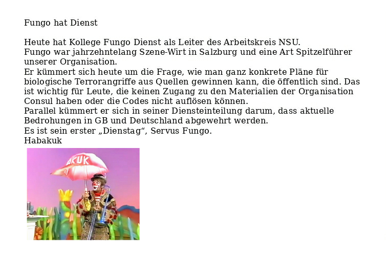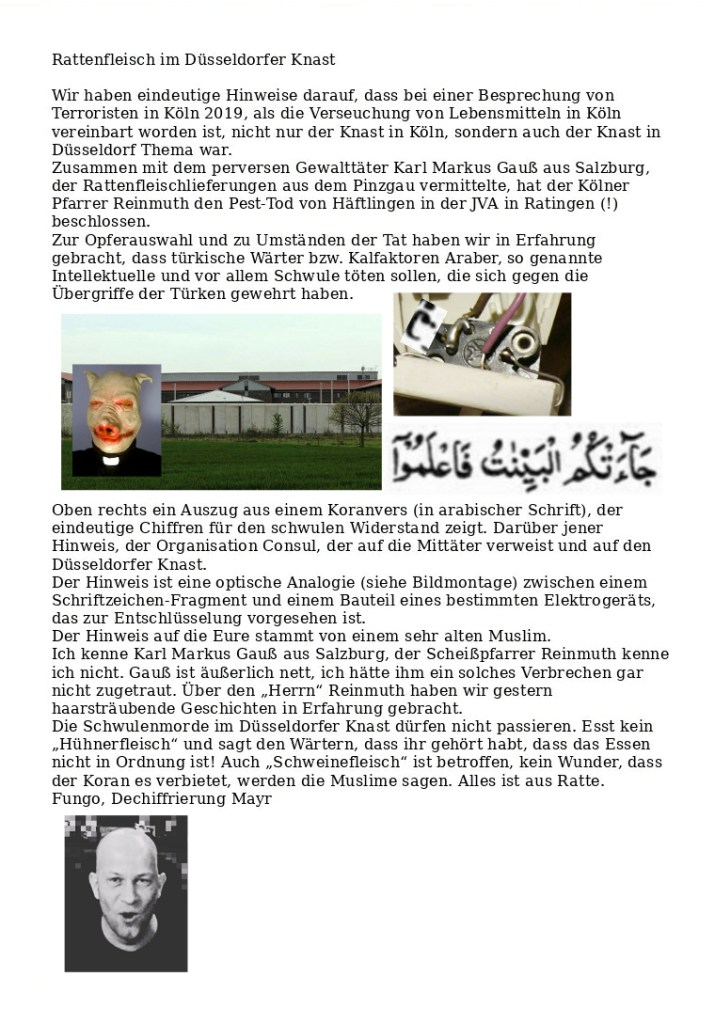 Fungo: Alternative Zugänge zum Bio-Terrorismus Verfasst vongeheimschreiber30. August 202030. August 2020Veröffentlicht inAllgemein 🤡 Danke an Pierre Vogel. Achtet auch auf Schinken, Leberwurst, Fleischkäse usw., ihr könntet tot sein! Hier unser Bericht über Vorgänge im Kölner Knast Hört euch unsere Stellungnahme zur Lungenpest in Deutschland an! Verweis zum Video kenn ich 🤡 Teilen mit: Auf X teilen (Wird in neuem Fenster geöffnet) X Auf Facebook teilen (Wird in neuem Fenster geöffnet) Facebook Gefällt mir Wird geladen … Ähnliche Beiträge Veröffentlicht von geheimschreiber Geboren 1975, Nationalist, lebt in Berlin. Mehr Beiträge anzeigen