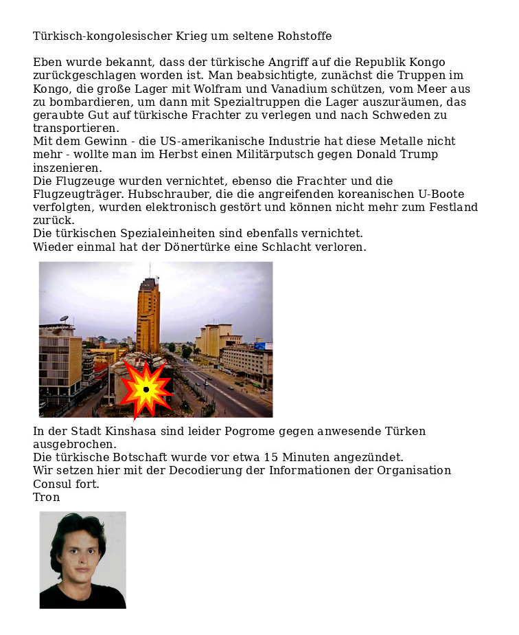 Seeschlacht am Kongo Verfasst vongeheimschreiber3. September 20203. September 2020Veröffentlicht inMilitärSchlagwörter:Afrika, Joe Biden, Kim Jong-Un, Kongo, Putsch, Vanadium, Wolfram Tron hat Dienst und Habakuk die Dienstaufsichtsbevorrechtung 🤡 Verweis zum Gesetzesentwurf, nach unseren Informationen wird Frau Windhager seit einigen Minuten hausdurchsucht – und die Klunker sind beschlagnahmt 🤡 Teilen mit: Auf X teilen (Wird in neuem Fenster geöffnet) X Auf Facebook teilen (Wird in neuem Fenster geöffnet) Facebook Gefällt mir Wird geladen … Ähnliche Beiträge Veröffentlicht von geheimschreiber Geboren 1975, Nationalist, lebt in Berlin. Mehr Beiträge anzeigen
