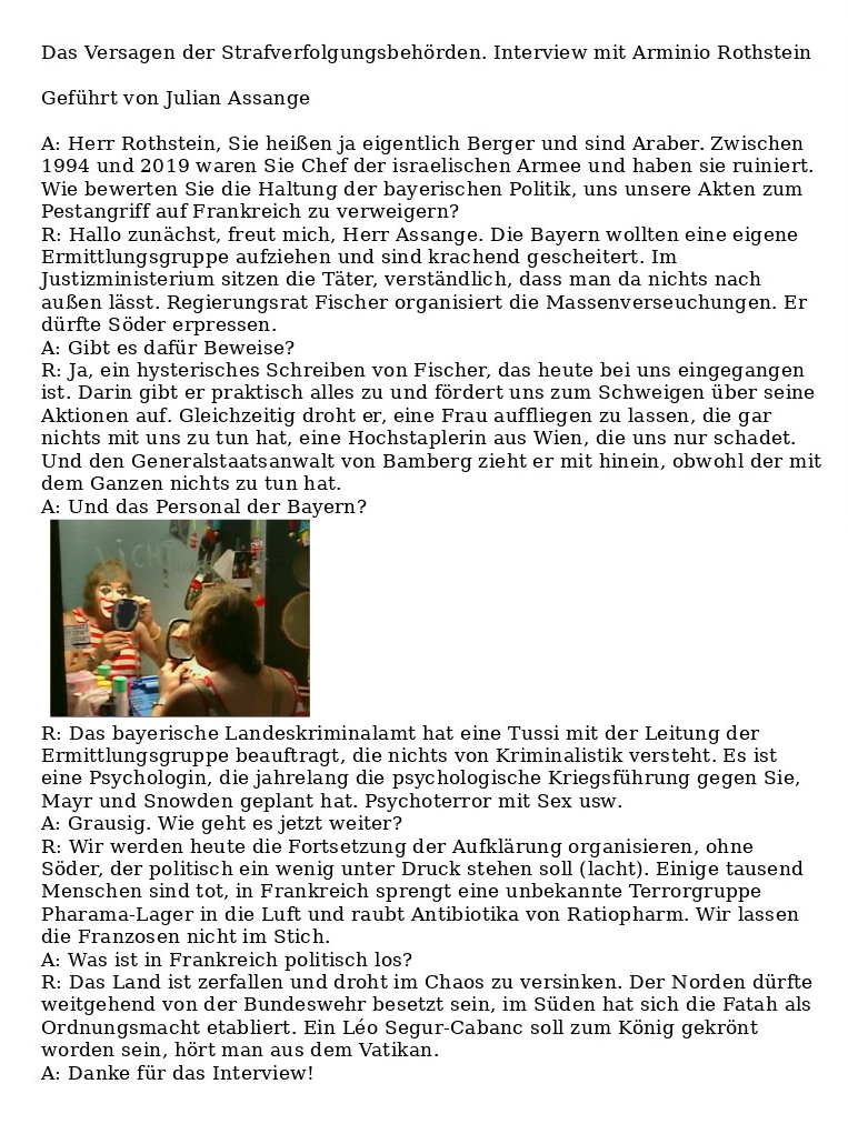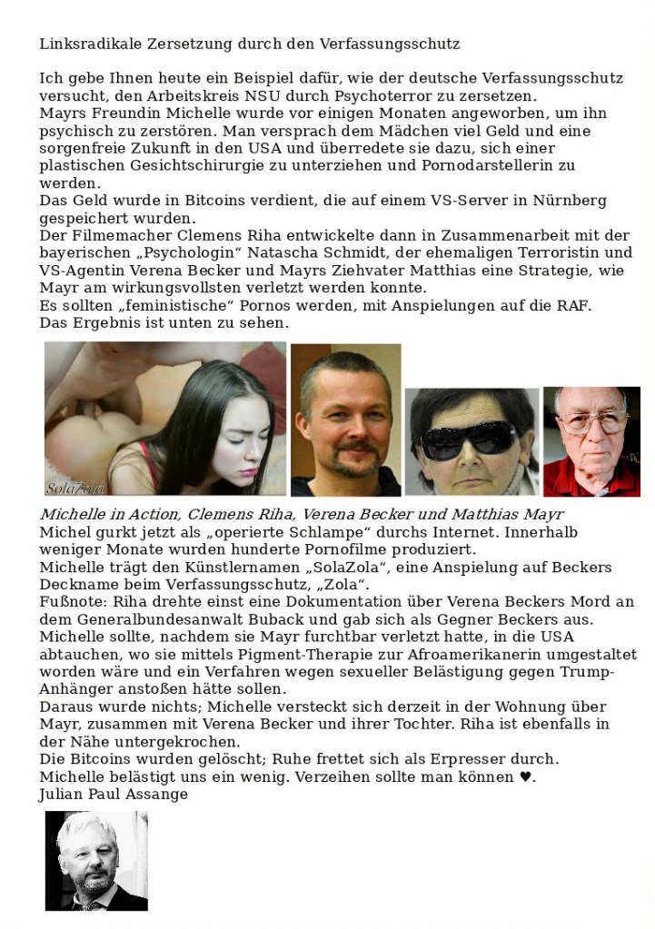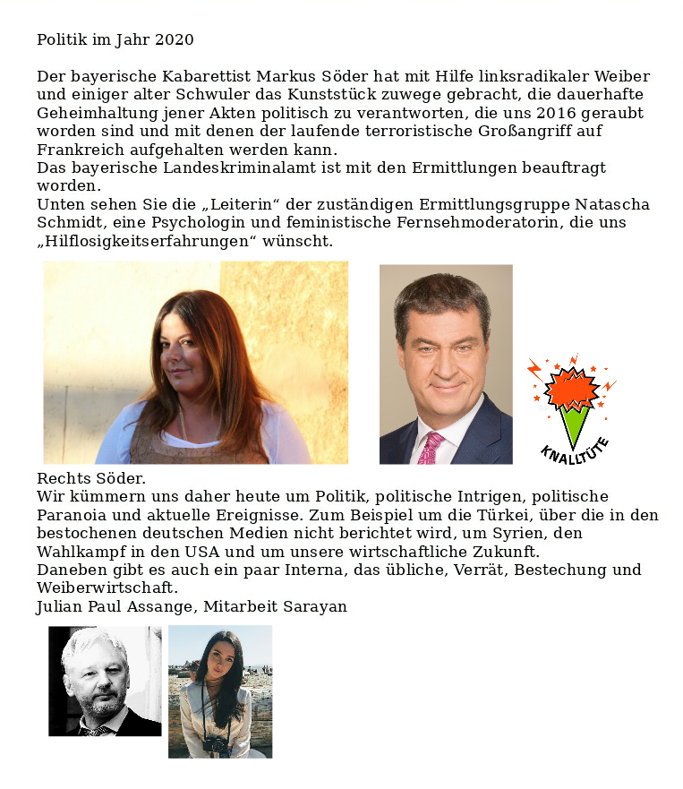 Assange: Söder und das BLKA halten die Pest auf Verfasst vongeheimschreiber1. Oktober 20201. Oktober 2020Veröffentlicht inAssangeSchlagwörter:Donald Trump, Julian Assange, Krankheit, Markus Söder, Peilung, Terrorismus Wetten dass? Nach 50 000 Pesttoten brechen die Bayern ab 📢 📢 Neue Folge: „Markus Söder als Pestbefürworter„, zum Anhören Logo klicken Verweis zu einem VS-Porno mit Michelle, „Riha“ nicht Ruhe 📢 Wir machen noch heute Abend auf einem eigenen Franzosen-Blog weiter, hier Ende 📢 Teilen mit: Auf X teilen (Wird in neuem Fenster geöffnet) X Auf Facebook teilen (Wird in neuem Fenster geöffnet) Facebook Gefällt mir Wird geladen … Ähnliche Beiträge Veröffentlicht von geheimschreiber Geboren 1975, Nationalist, lebt in Berlin. Mehr Beiträge anzeigen