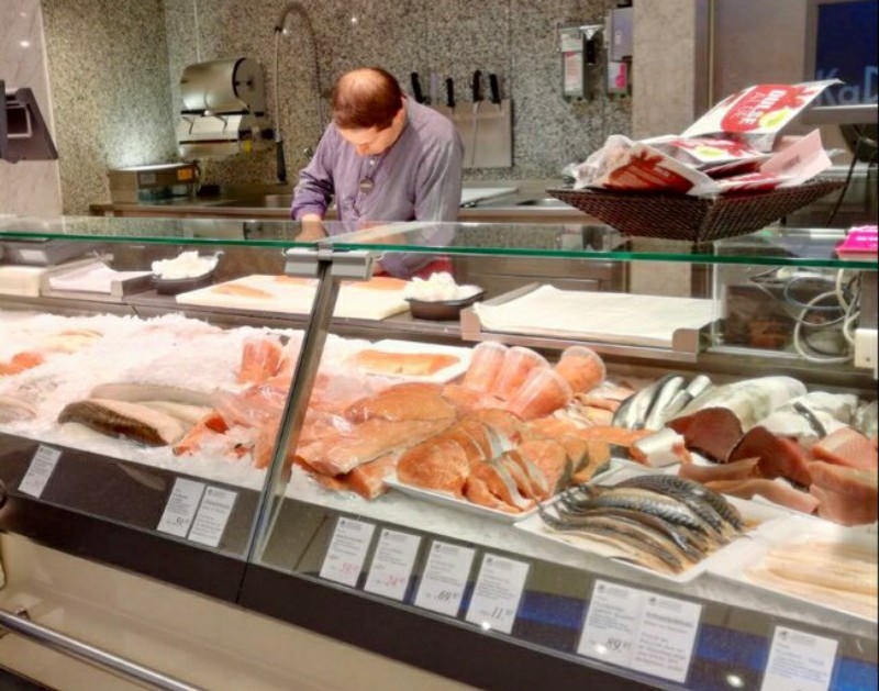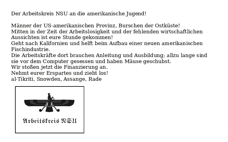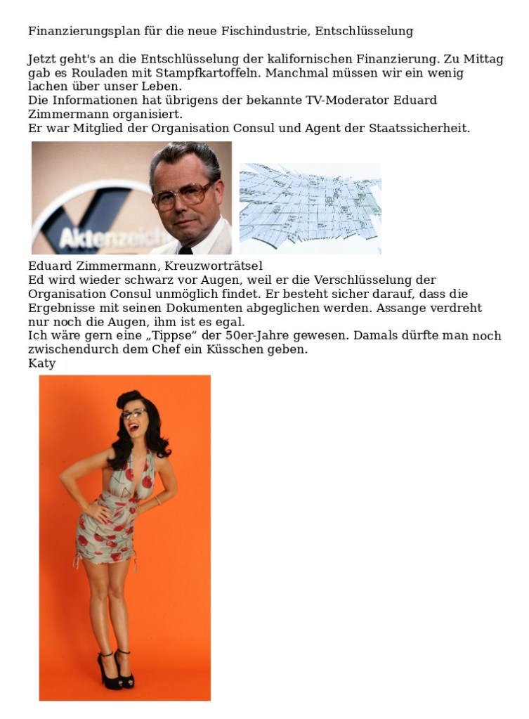 Rechts oben die Fischtheke im „Kaufhaus des Westens“ in Berlin. Die israelische Agentin Angela Merkel versuchte dort 2005 mehrfach, mich zum Schweigen über die Chancen der USA im Bereich der Fischindustrie zu motivieren. Ihre Agenda wurde um 2010 über die NSA dem Verfassungsschutz übermittelt. al-Tikriti