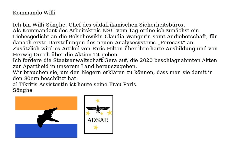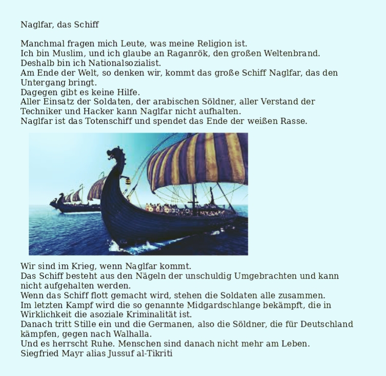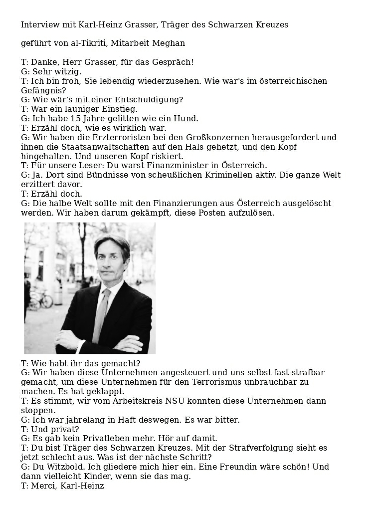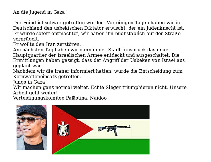 Palenda will als „Psychiater“ jetzt den halben Arbeitskreis NSU mit Gutachten ins Irrenhaus bringen. Er arbeitet mit geistesgestörten Weibern zusammen, die uns persönlich kennen und früher für die Berliner Polizeiaufsicht gearbeitet haben. al-Tikriti