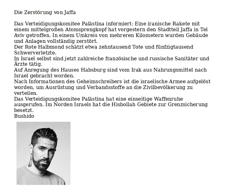 Vorgestern, am 15. Februar, ist die israelische Stadt Jaffa von einer Kernwaffe zerstört worden. Der Iran hat über seinen Angriff offiziell informiert. Rothstein
