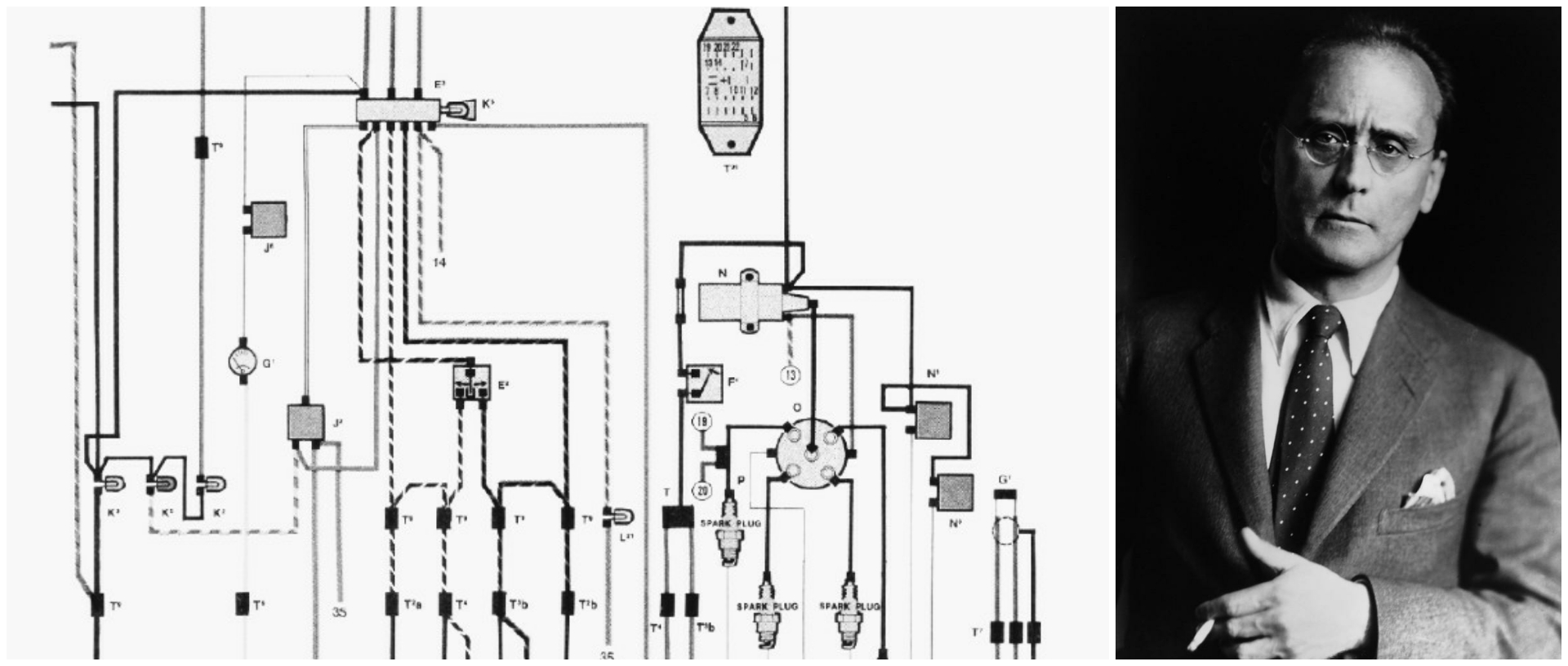 Schaltplan des VW Käfer 1974/75, Konstrukteur Anton Webern