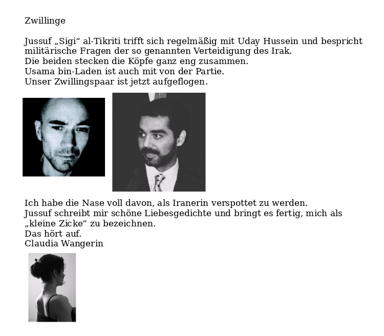 Ebenso mit von der Partie der israelische Agent Hans Peter Meißnitzer alias Nihad Muric bzw. Patrice Sperl. al-Tikriti