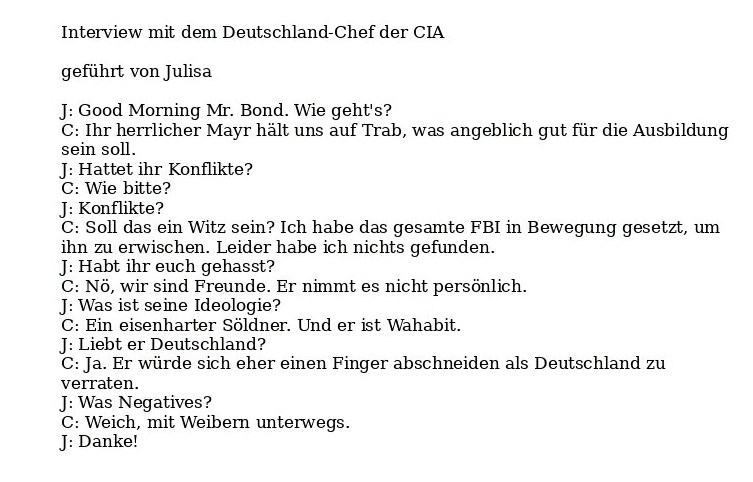 Mayr bzw. al-Tikriti will nicht und dreht durch, weil das alles Geheimnisverrat sein soll. Läppisch. Michelle