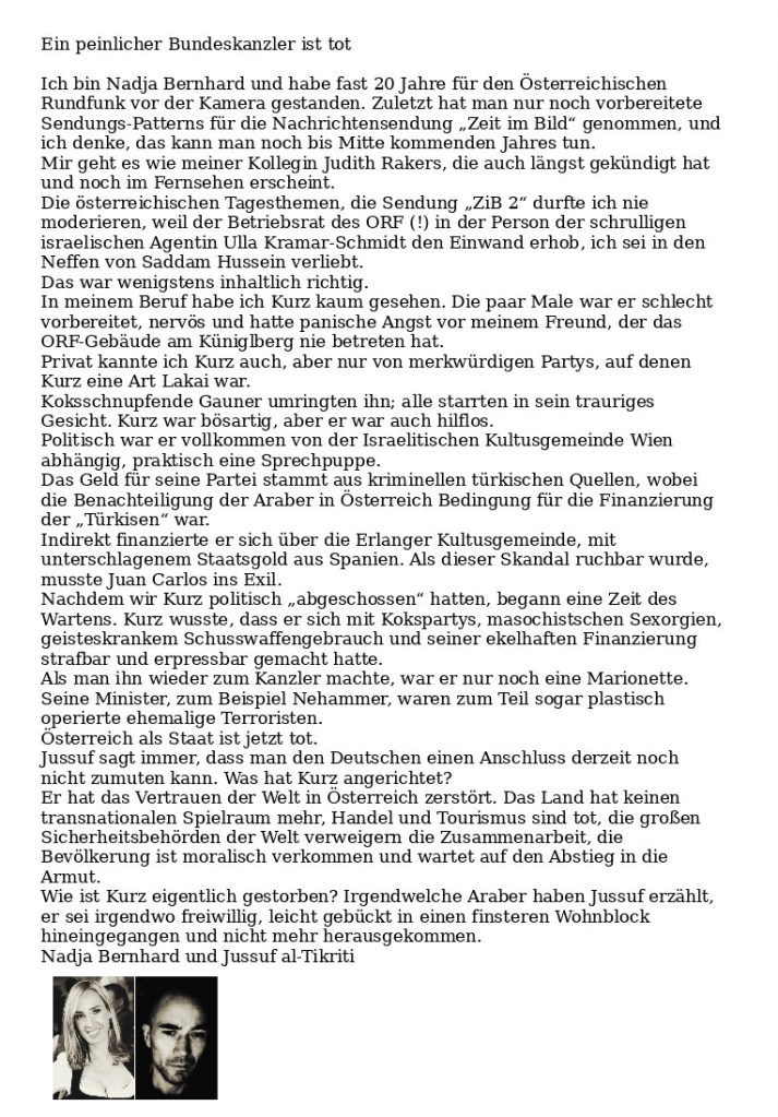 Als Zwischenprogramm zwei wichtige Stellungnahmen unserer Mitarbeiterinnen Carola und Lassen zur Psychologie des israelischen Weihnachtsmarktterrors. al-Tikriti